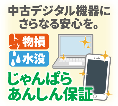 じゃんぱらで扱う中古品はチェックとクリーニングを細かく行なっています。また、専用の消去ツールを利用してデータ消去を行なっております。多くのお客様からじゃんぱらの技術へ高い評価をいただいております。